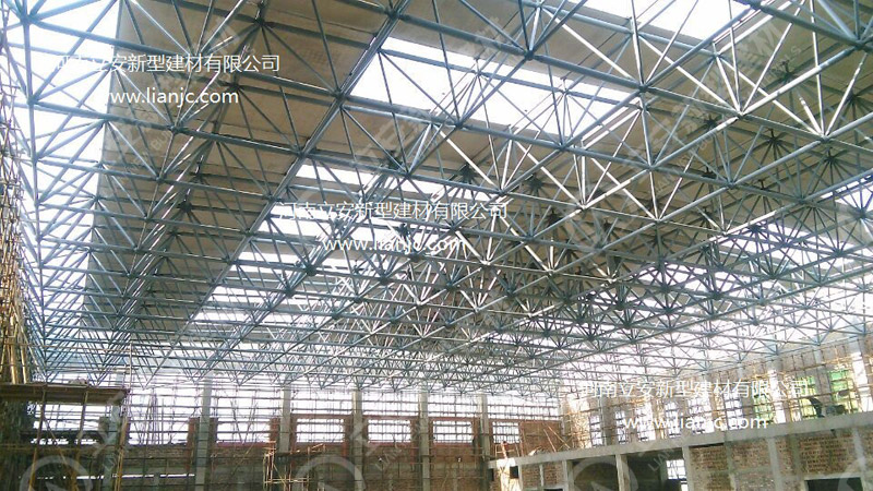 鋼骨架輕型板適用于輸煤棧橋、公共民用等建筑圍護(hù)屋面、樓面、墻面.鋼骨架輕型板由輕型鋼骨架、冷拔鋼絲網(wǎng)、改性水泥珍珠巖復(fù)合芯材(專有技術(shù))、復(fù)合抗?jié)B耐磨涂層(專有技術(shù))組成.鋼骨架輕型板集輕質(zhì)、承重、節(jié)能、防火、隔聲、泄爆、抗震等功能于一體,既保持了傳統(tǒng)鋼筋混凝土構(gòu)件安全度高、使用壽命長的優(yōu)點(diǎn),又滿足了現(xiàn)代建筑對輕質(zhì)、節(jié)能、環(huán)保的要求。